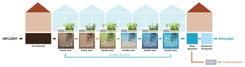 Mungkin kita bakalan mikir sistem ini seperti sistem wetland. Tapi ternyata ini berbeda. Menggabungkan sistem trickling filter dengan media akar tanaman. Plus sistem anoxic dan aerobic yang sekarang lagi aku ambil di mata kuliah PBPAL. (wah ngejelasinnya gimana ya hhaha)